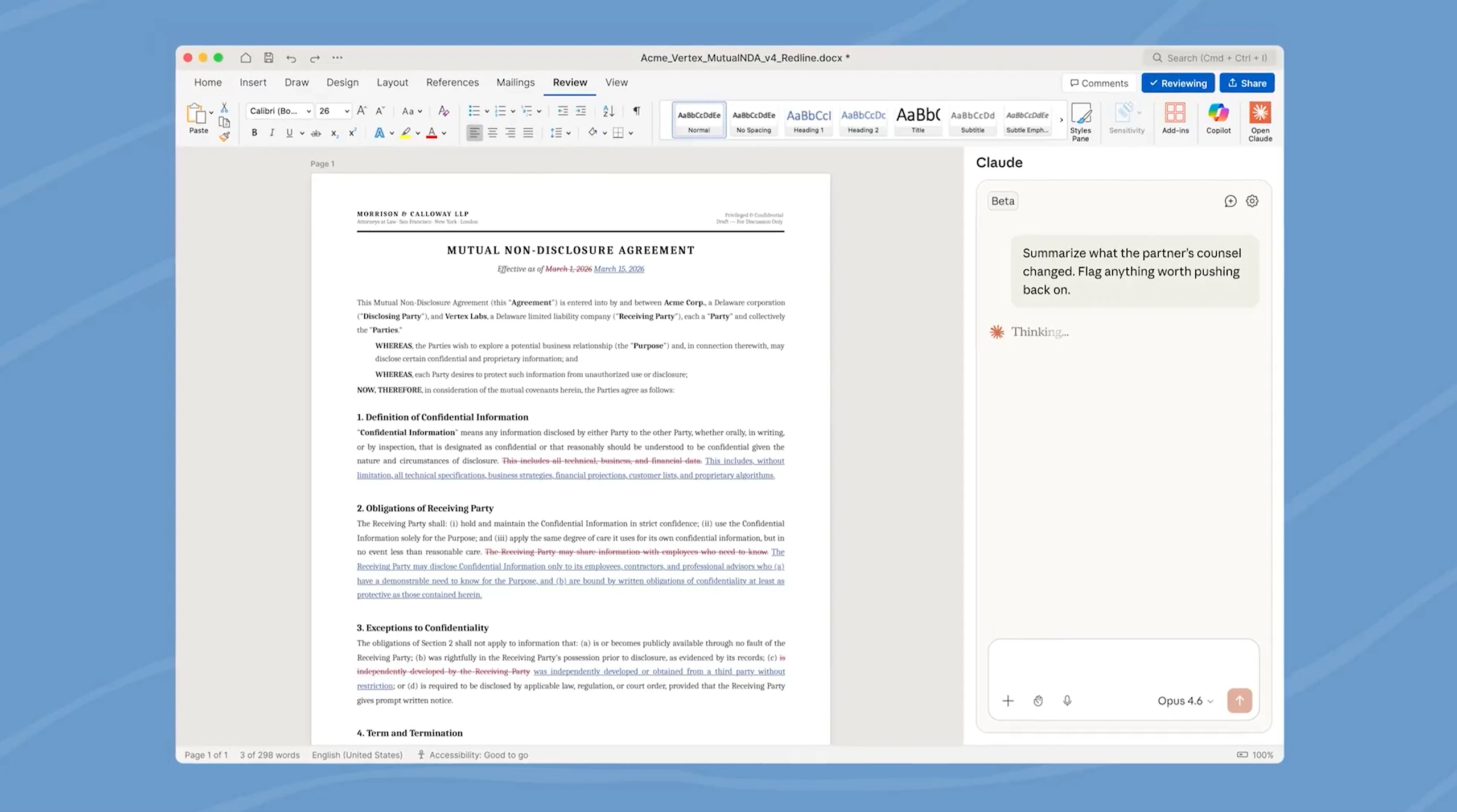 标语:将Claude原生集成到你的Microsoft Word工作流程中。